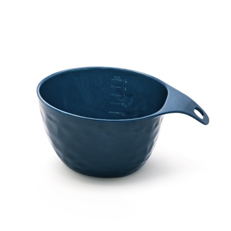 aussen am Rucksack befestigt. Platzsparend stapelbar und mit zweierlei Messskalen an der Innenseite – je nachdem ob man auf metrische Masse oder traditionelle Cups steht.
